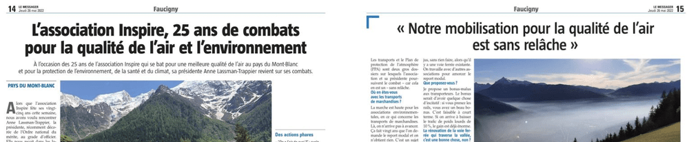 Engagée dans le Plan de Protection de l’Atmosphère de la vallée de l’Arve (PPA) depuis 2010, pour l’interdiction des poids lourds les plus polluants, Inspire a aussi dénoncé la fraude à l’Adblue et propose des solutions pour le report vers le rail, les transports en commun et le vélo comme mode de déplacement.