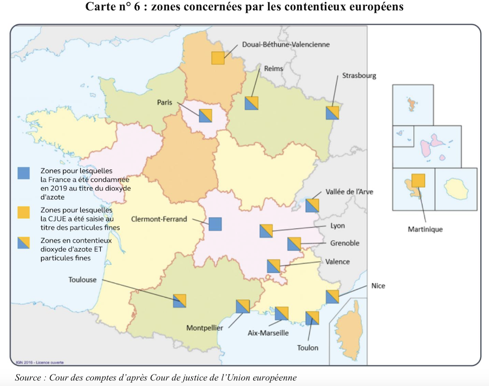 Les politiques publiques ont quelques effets et une baisse des émissions et des concentrations est constatée. Cependant, le niveau de pollution de l'air reste préoccupant et les progrès actuels ne permettront pas de respecter les normes européennes à court terme. Le Conseil d'Etat vient déjà d’infliger à l’État une astreinte d’un montant inédit de 10 millions d'€ par semestre de retard à respecter les valeurs limites. La Cour de justice de l’Union européenne pourrait quant à elle imposer une amende de 100 millions d'€ la première année, puis 90 millions d'€ par année de persistance des dépassements pour le dioxyde d'azote.