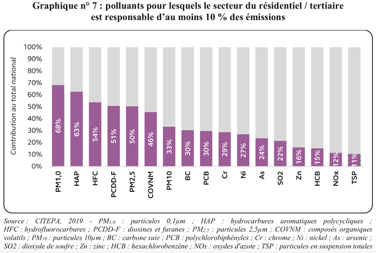 - Les émissions de particules fines dues au chauffage individuel au bois ou au brûlage illégal de déchets verts pour le secteur résidentiel-tertiaire. Les efforts déployés afin de moderniser le parc d’appareils de chauffage individuels et de sensibiliser les usagers doivent être poursuivis.