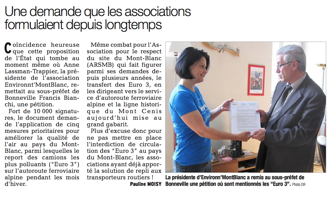 La lettre-pétition lancée par la campagne Inspire, demandant l’application de 5 mesures prioritaires pour améliorer la qualité de l’air au pays du Mont-Blanc, a été remise au sous-préfet le mercredi 28 mai, en préfecture de Bonneville.