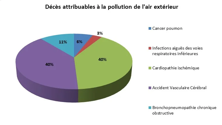 Ce dossier reprend les dernières et nombreuses études internationales sur le sujet. Ainsi, en décortiquant les informations émanant du monde de la recherche on apprend par exemple que, contrairement aux idées reçues, les effets de la pollution de l’air ne sont pas majoritairement d’ordre respiratoire, mais que les principales causes de décès dûs à cette pollution sont les infarctus et pathologies coronariennes (40%), les accidents vasculaires cérébraux (40%), puis en troisième position les différentes pathologies respiratoires (20%).